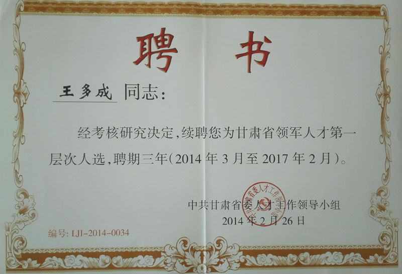 2014-2016年王多成甘州區專業技術…